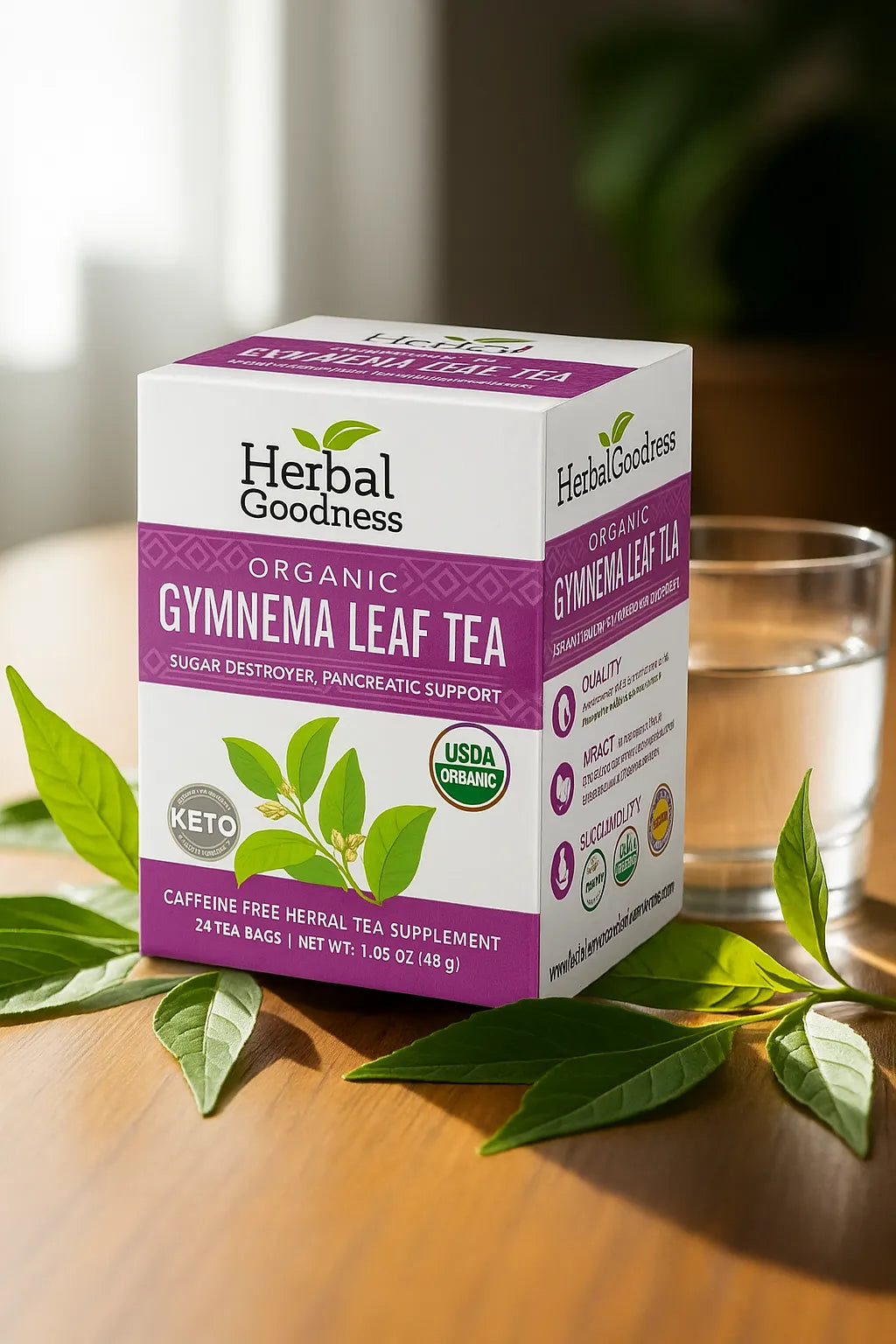 A naturally derived herbal tea featuring organic Gymnema, a botanical traditionally used in herbal practices.