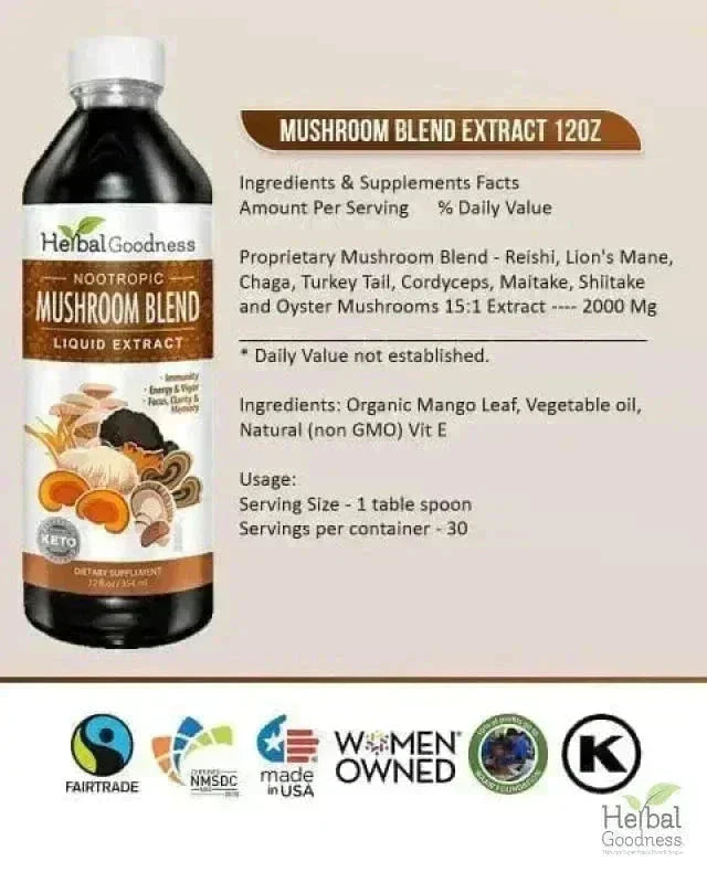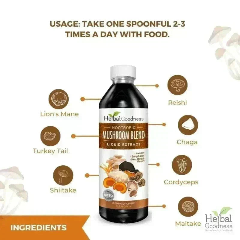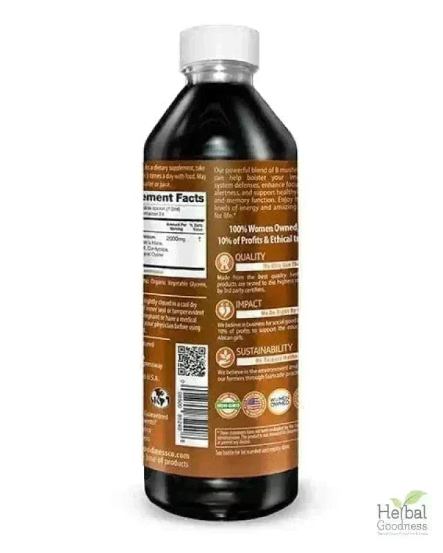 Discover a thoughtfully crafted botanical blend featuring eight premium mushrooms, known for their traditional use in plant-based wellness practices. This liquid extract brings together Reishi, Lion's Mane, Chaga, Turkey Tail, Cordyceps, Maitake, Shiitake, and Oyster mushrooms in a convenient liquid form.