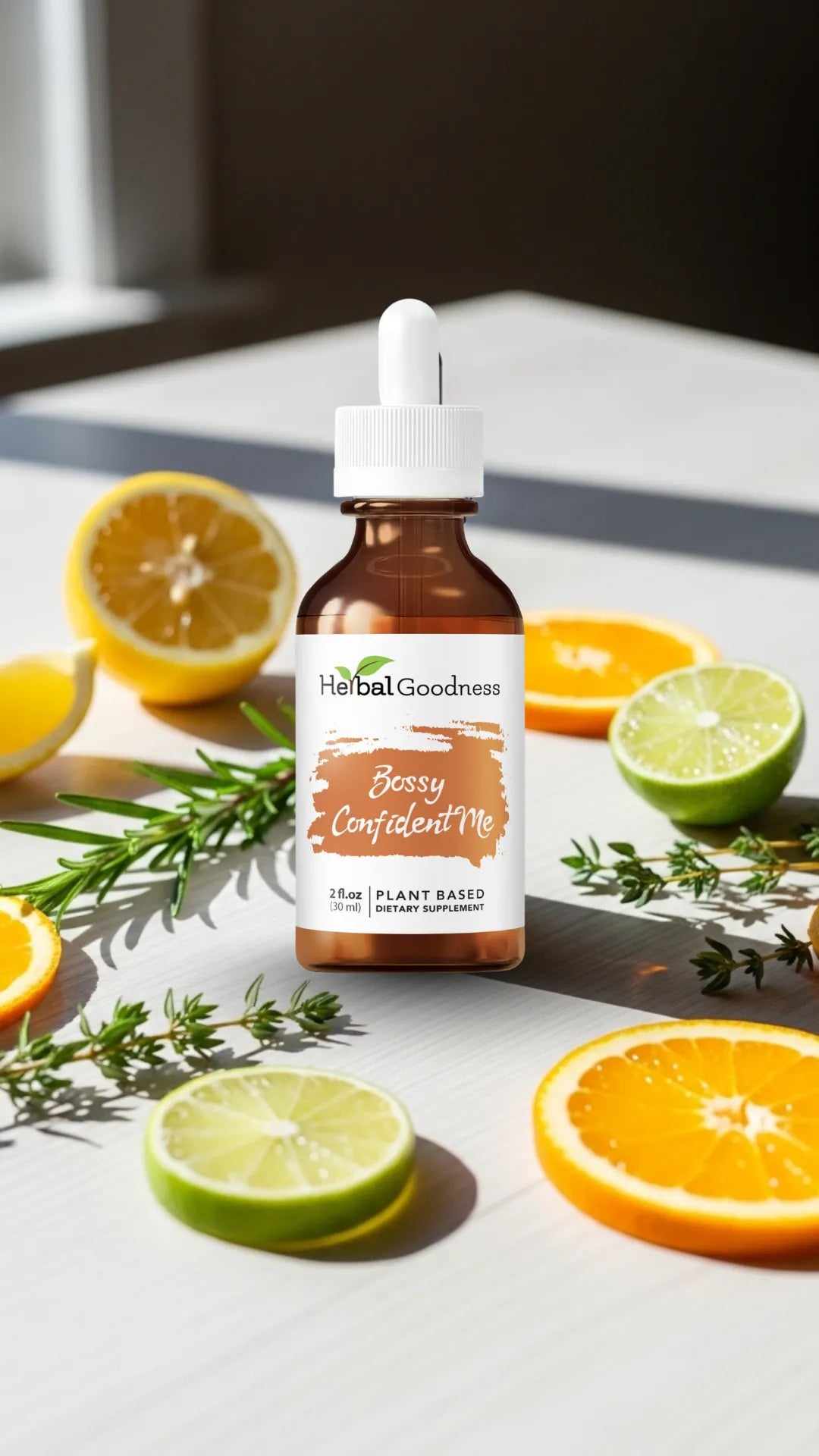 Herbal Goodness Bossy Confident Me is a 2 fl. oz plant-based liquid extract made with a thoughtfully selected blend of botanical ingredients.