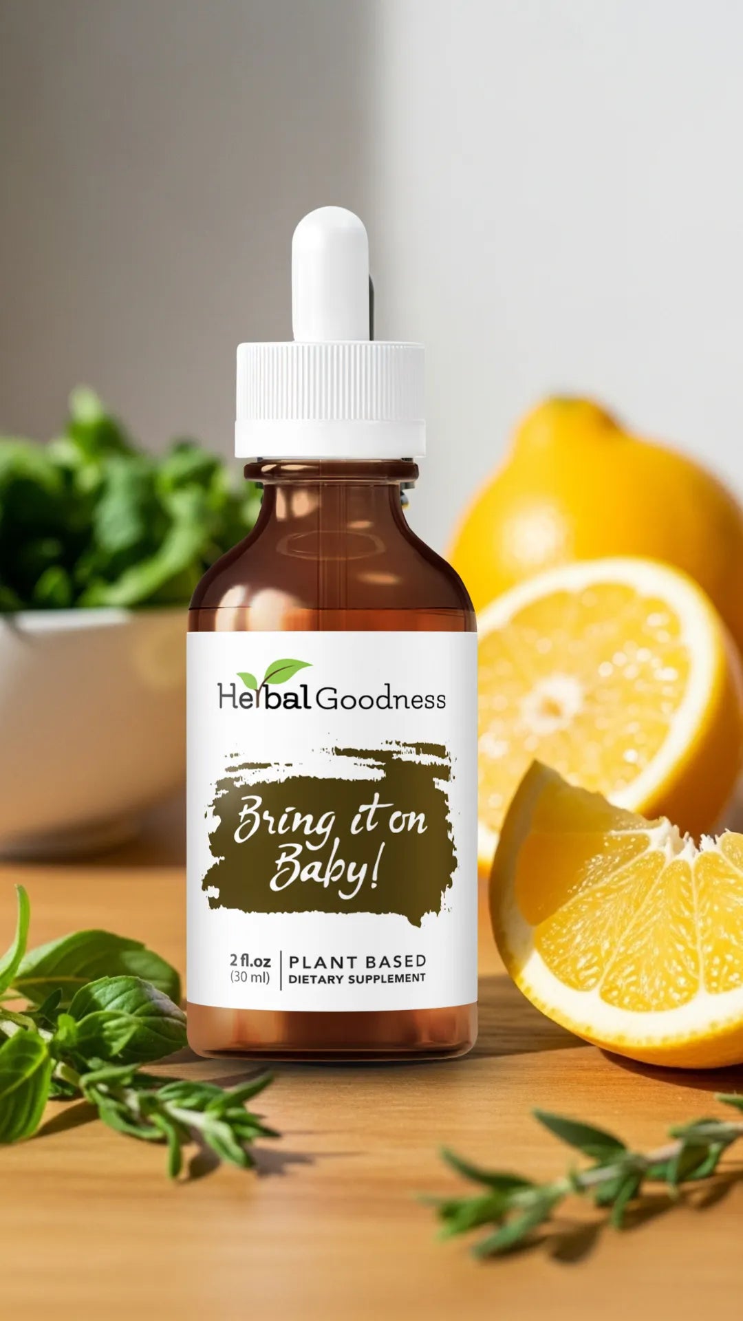 Our Bring It On Baby! – 2 fl. oz. is a premium liquid extract crafted with carefully selected herbs to naturally support energy, endurance, and overall wellness. Alcohol-free and free from synthetic additives, it delivers clean, concentrated plant goodness in every drop—helping you rise to the occasion and take on whatever the day brings.