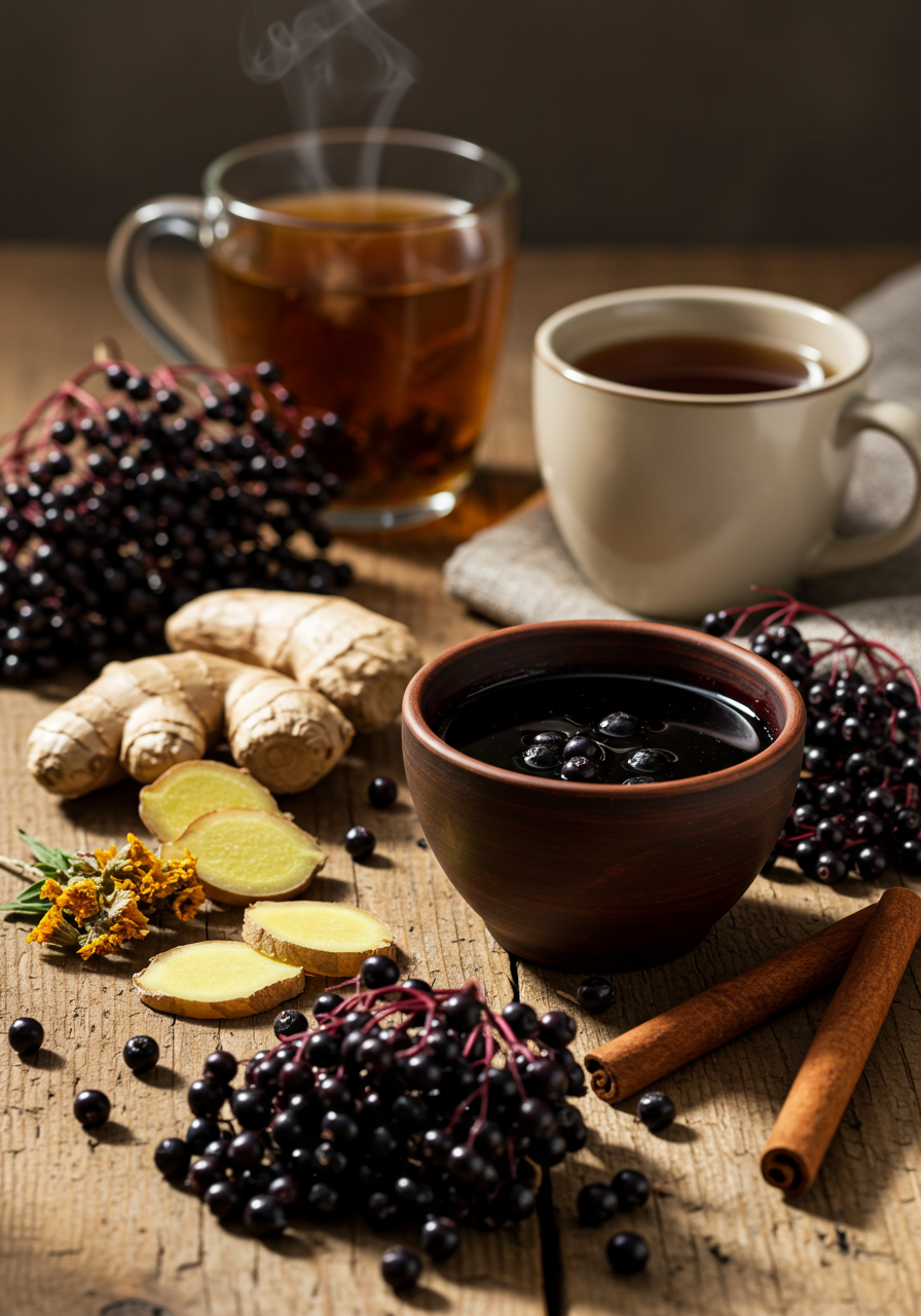 Elderberries are often simmered into rich syrups and tonics enjoyed as part of seasonal traditions.