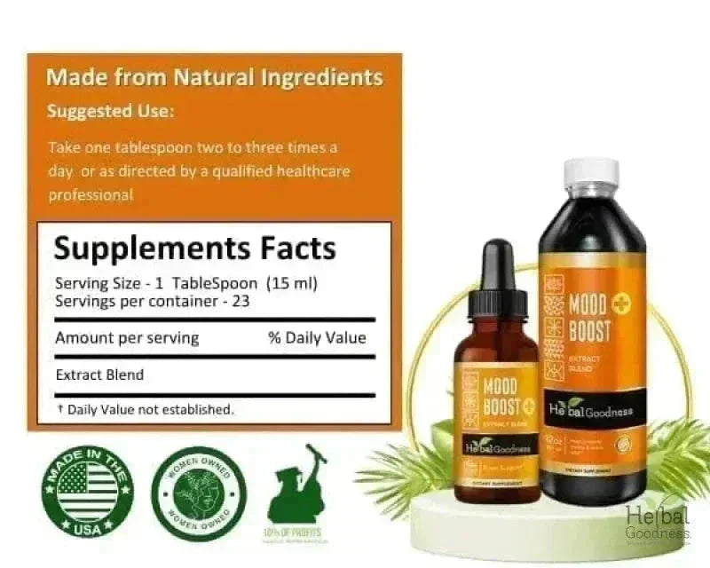 Embrace the calming essence of nature with the Herbal Goodness Mood Boost Extract Blend Liquid—a thoughtfully crafted herbal blend made with premium, plant-based ingredients. This aromatic formula features a floral and earthy bouquet, combining herbs traditionally appreciated in wellness traditions around the world.